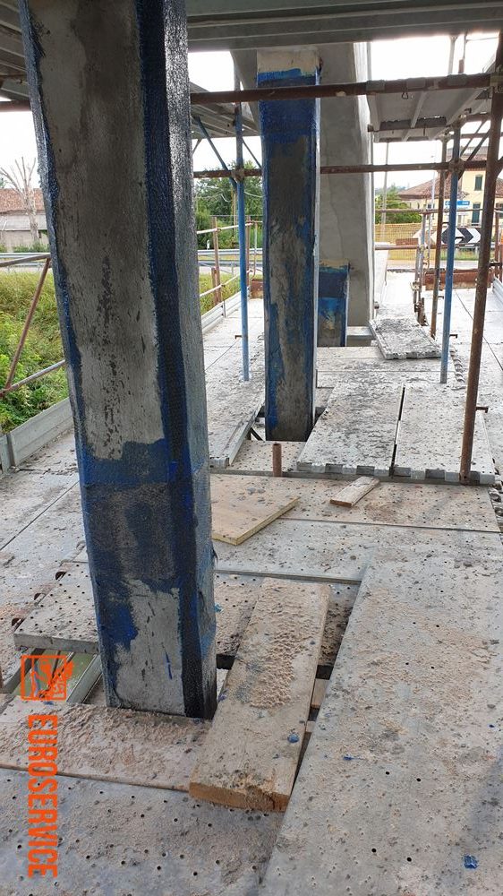 Il cantiere è luogo d’intesa tra materiali: il calcestruzzo deformato dal tempo accoglie malte calibrate, mentre la fibra di carbonio avvolge la struttura, confezionando un supporto moderno senza alterarne l’anima. È restauro compiuto con sguardo sofisticato e sensibilità tecnica — idealmente leggero, ma profondamente solido.