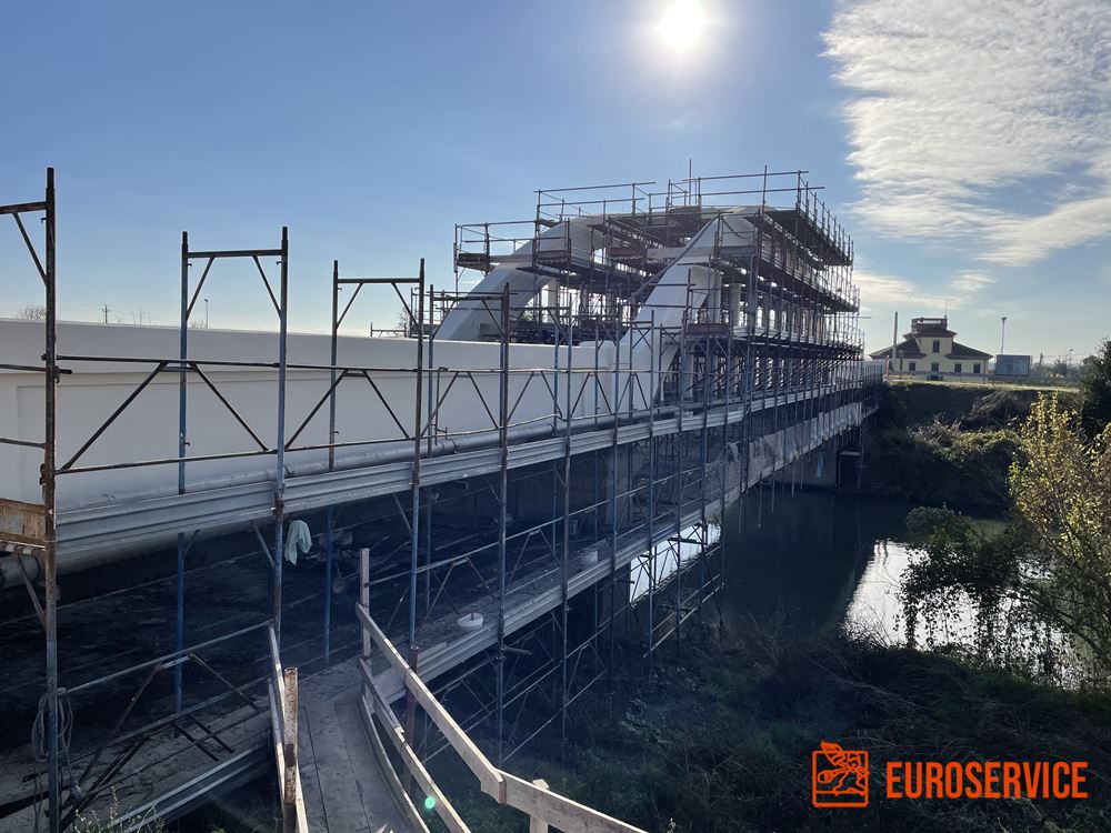 Restauro e riqualificazione funzionale del ponte sul Fiume Bacchiglione, risanamento delle strutture portanti con apposite malte e posa di fibre in carbonio.