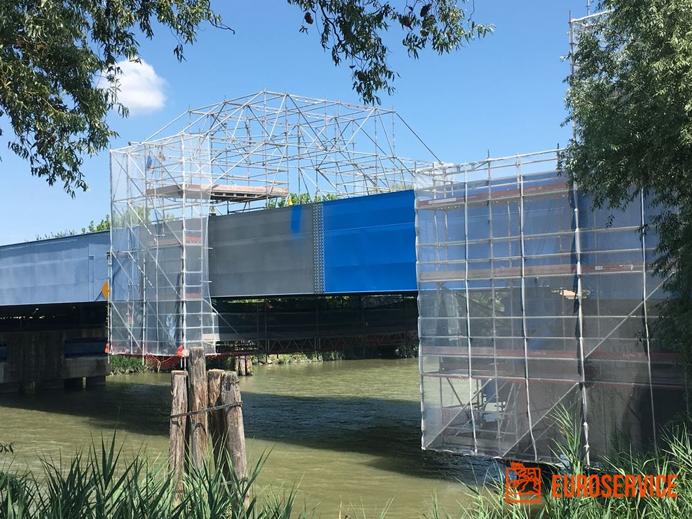 Il ponte affida al cantiere una metamorfosi silenziosa: la sabbiatura cancella la ruggine e le tracce degli agenti atmosferici, mentre la vernice, stesa con cura, restituisce a metalli e giunti una nuova pelle protettiva. È un lavoro di precisione, dove ogni passaggio è promessa mantenuta.